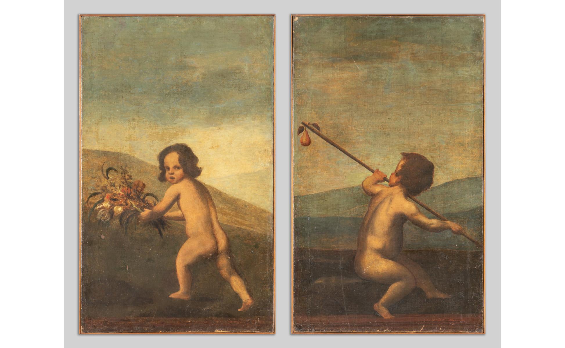 Scuola italiana sec.XVIII 'Giochi di bimbi' coppia di olii