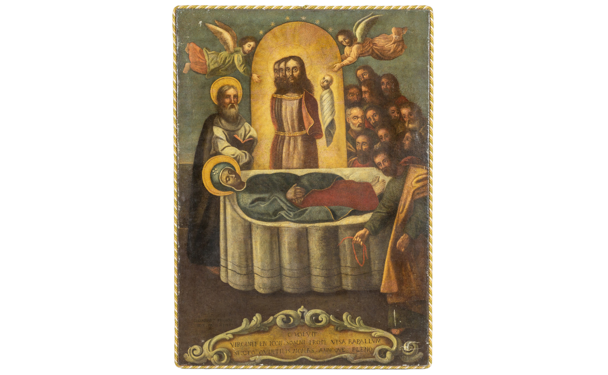 'Il trapasso della Vergine' olio f.to in b. a s. Bernardino Properi 1728