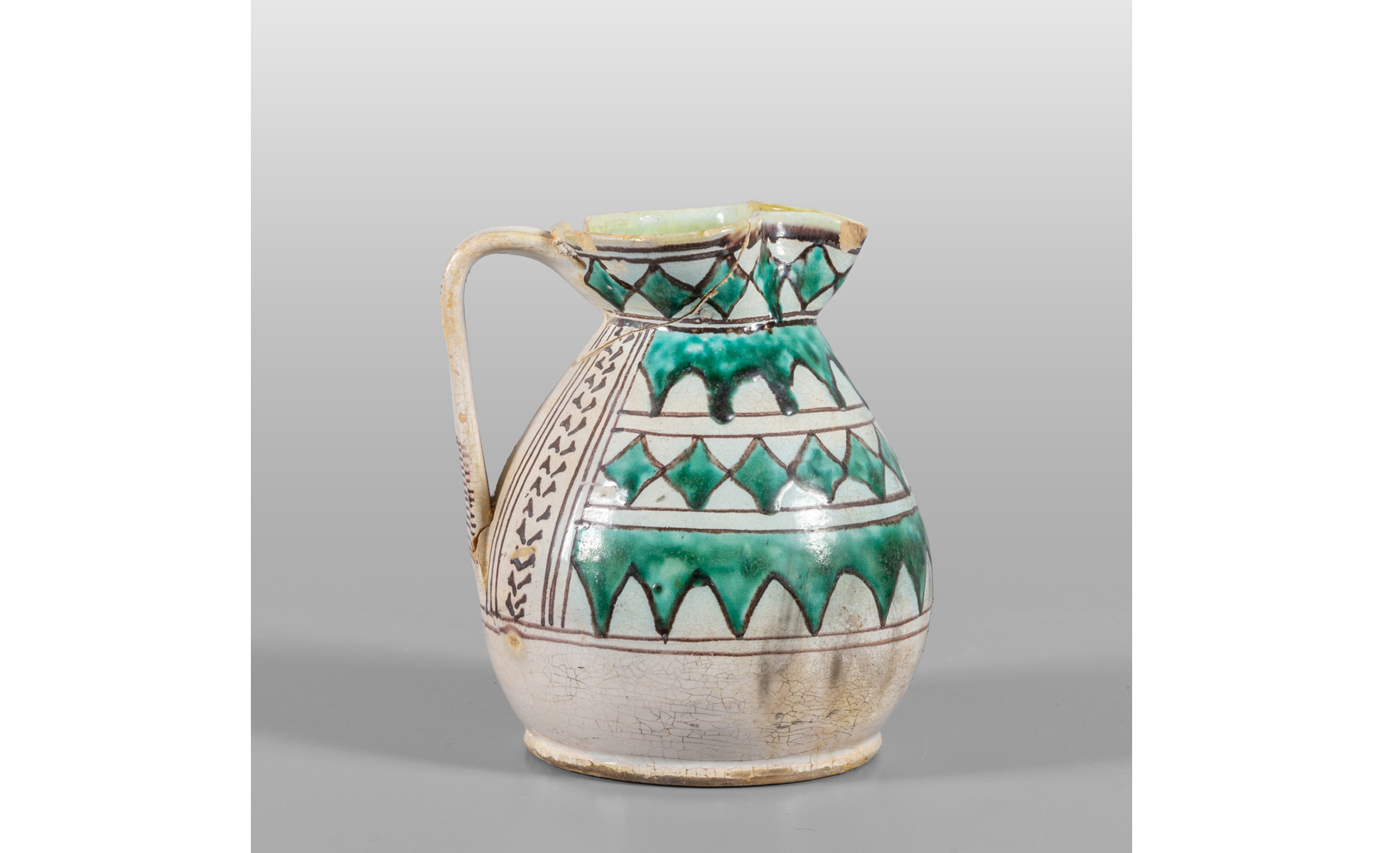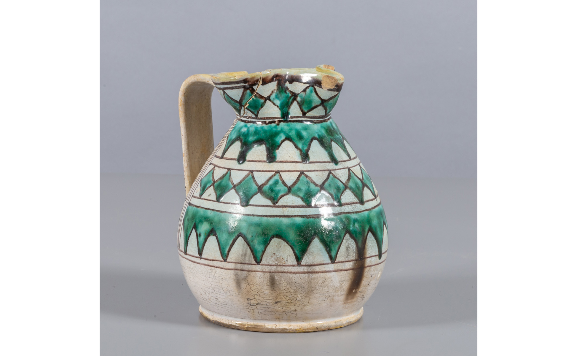 Brocca in maiolica a decoro geometrico Orvieto sec.XIX