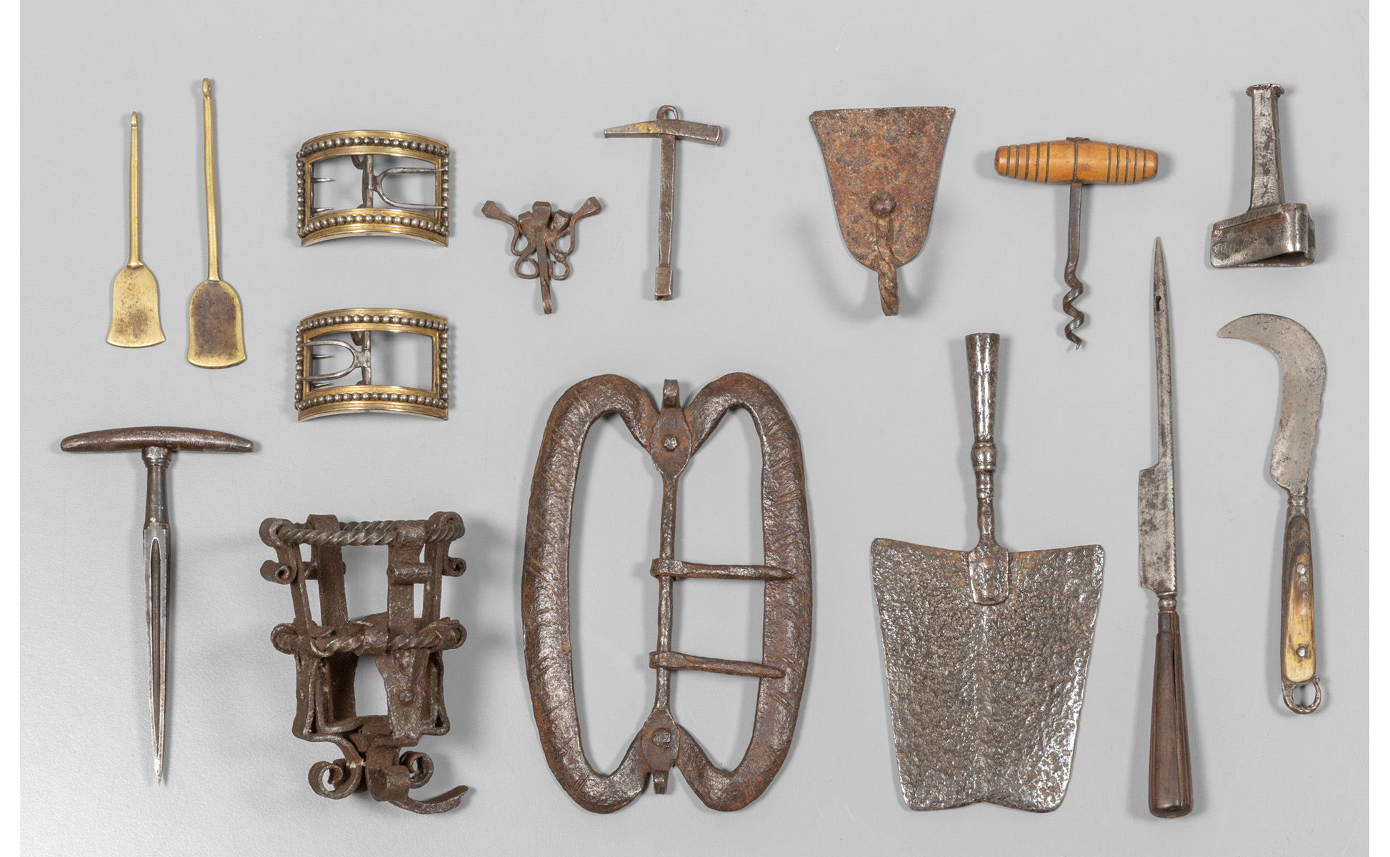 Scatola contenente diversi antichi ferri