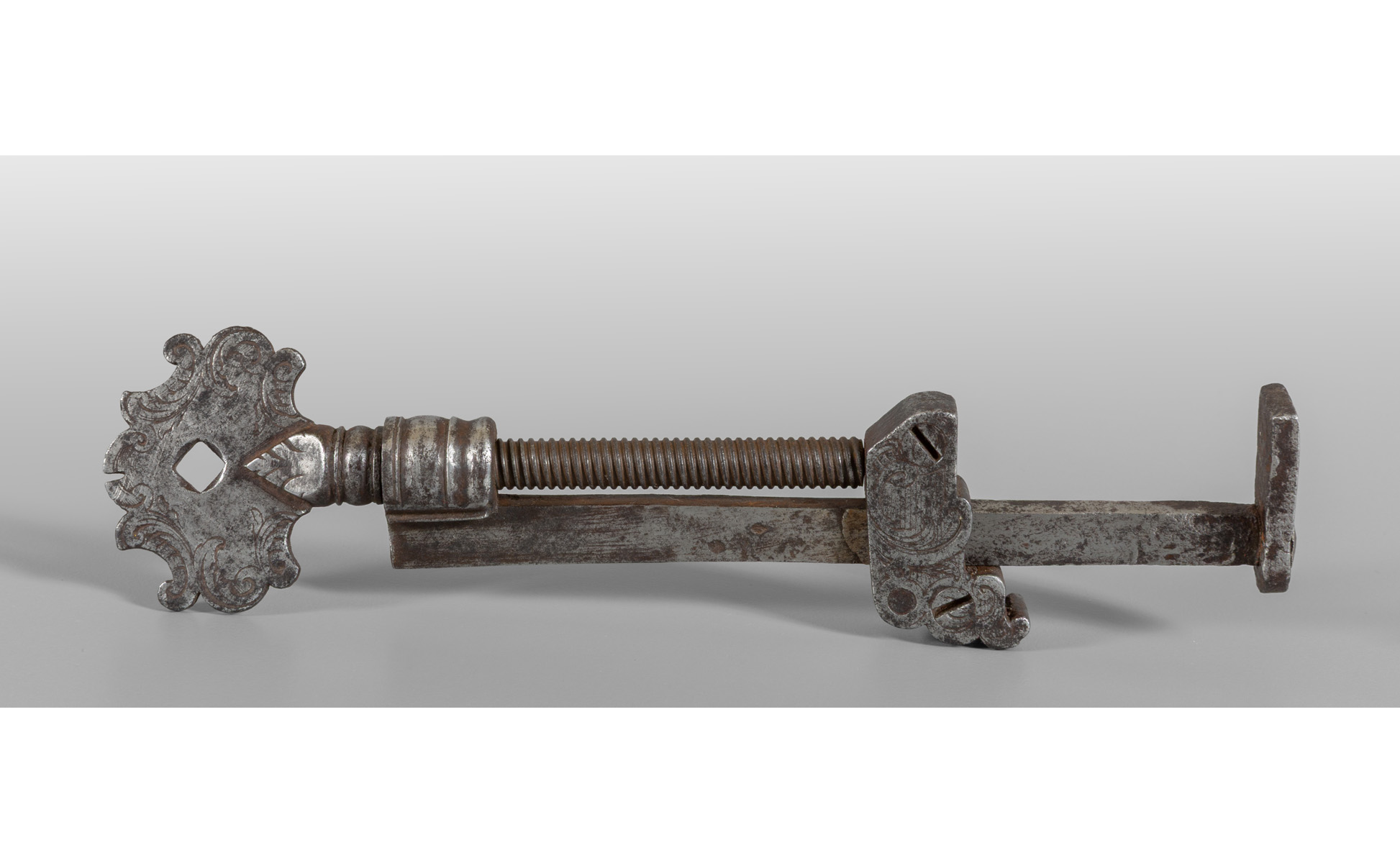Strumento in ferro scolpito per archibugio sec.XVII