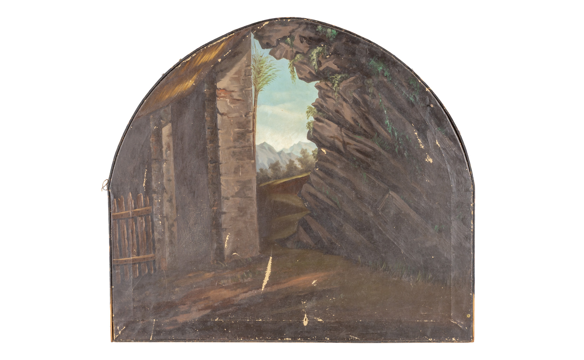 Scuola italiana sec. XIX 'Paesaggio' olio di forma centinata