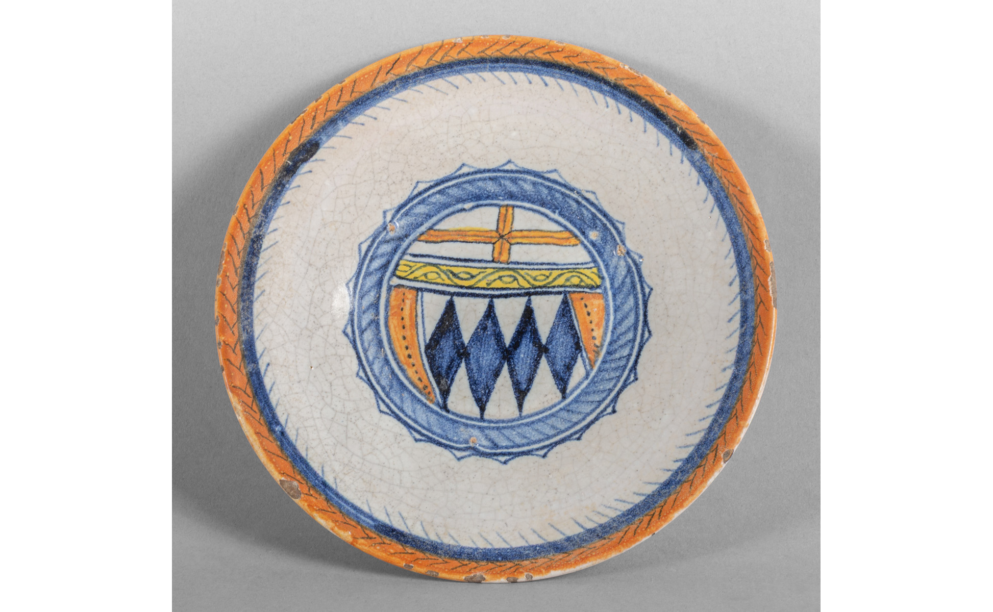 Piatto in ceramica policroma con al centro stemma nobiliare Siena sec.XIX