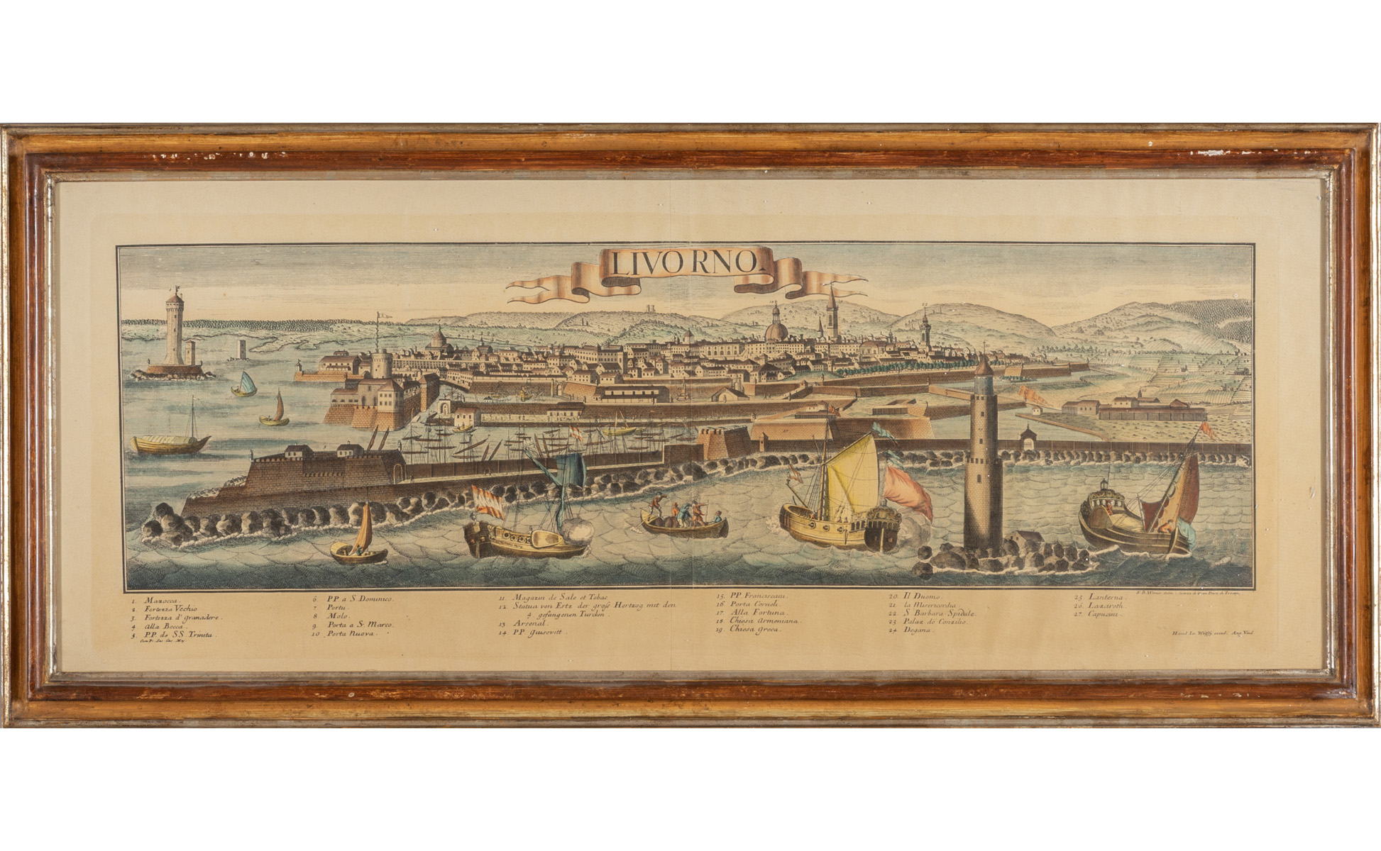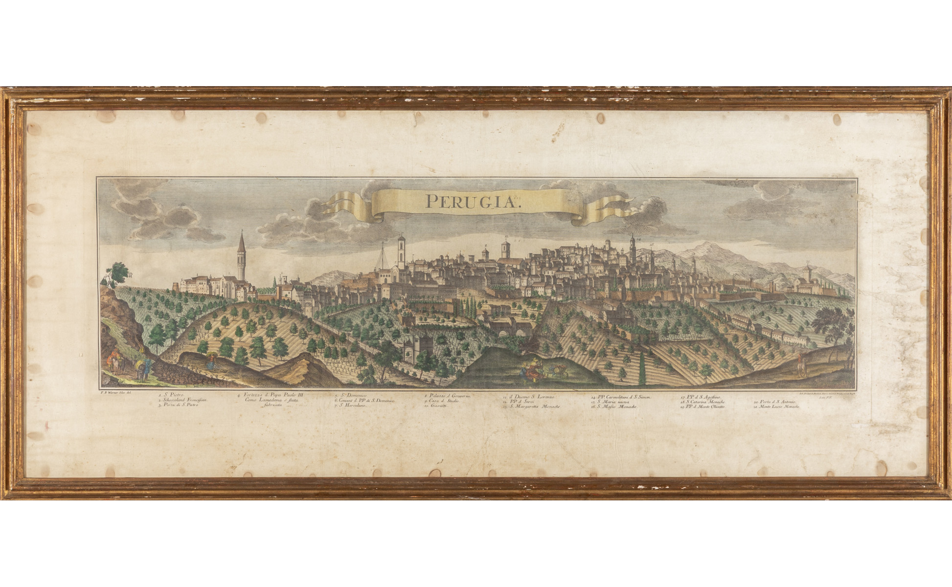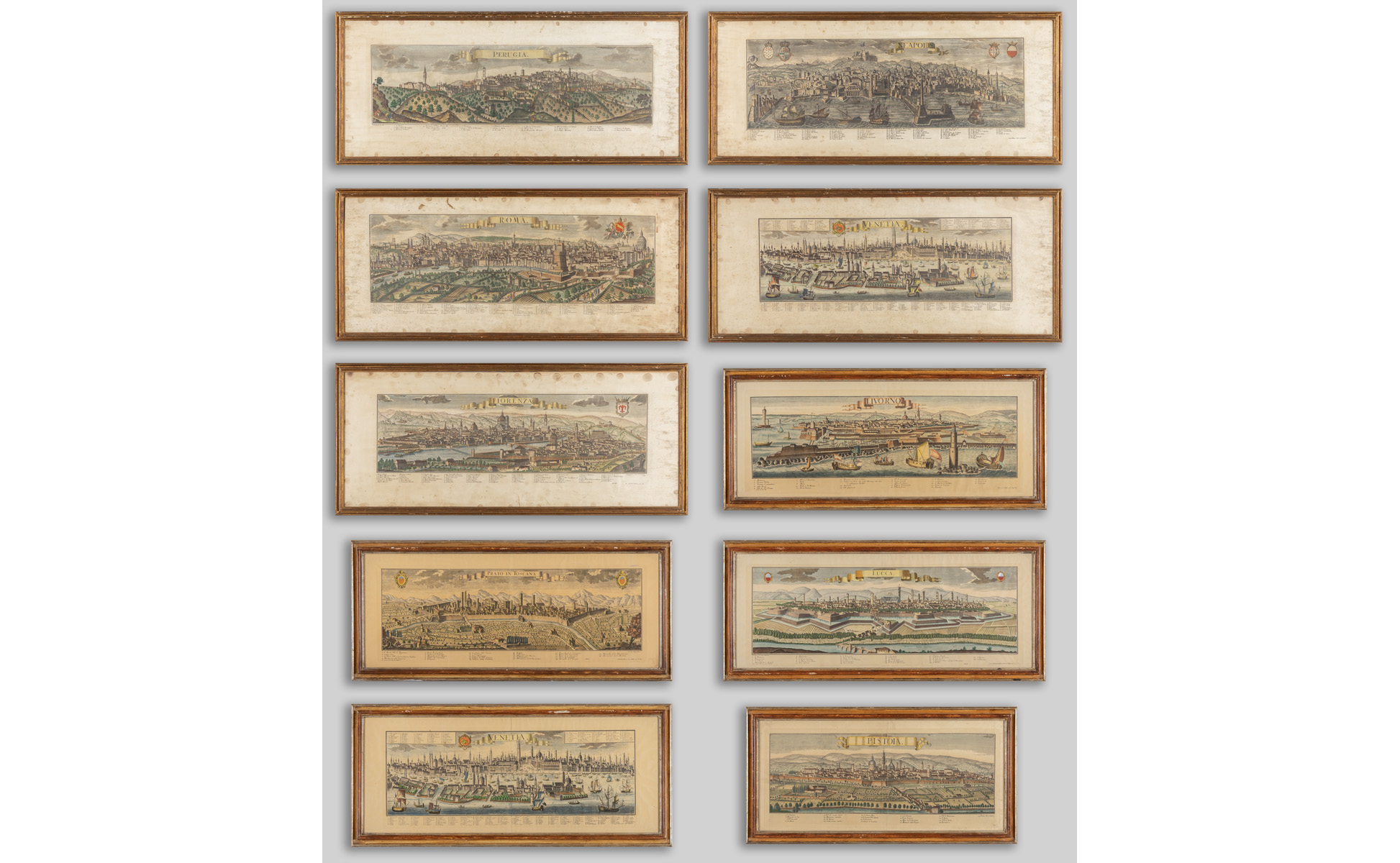 Dieci stampe colorate raffiguranti vedute di città