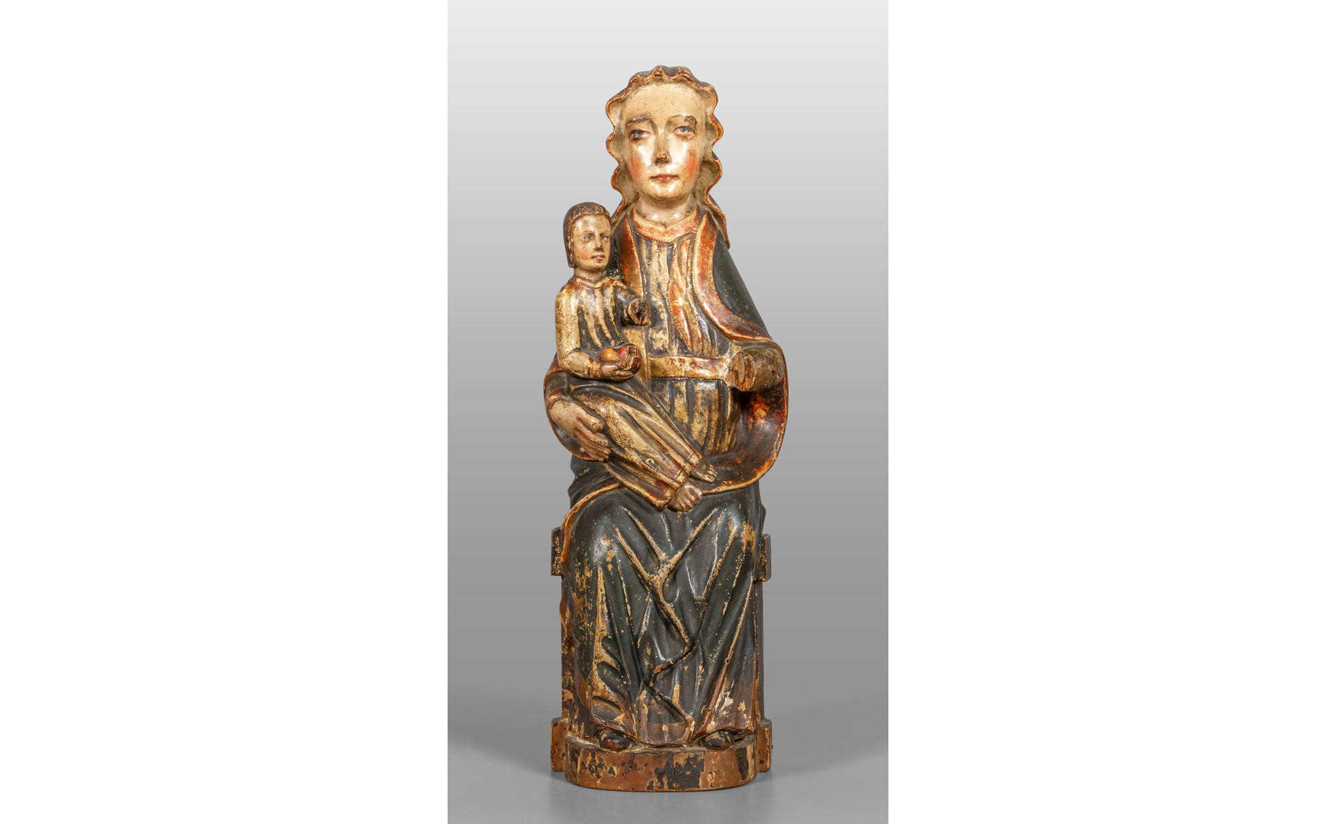 Madonna con Bambino scultura in legno finemente intagliato e policromato Centro Italia sec.XV
