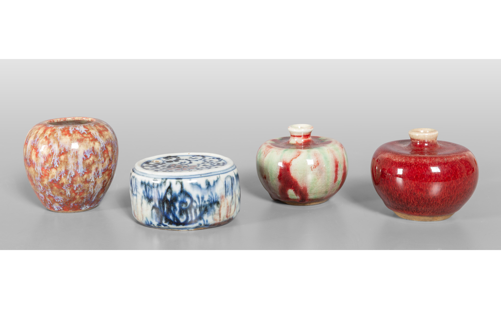 Quattro vasetti in porcellana tre flambè ed uno bianco e blu