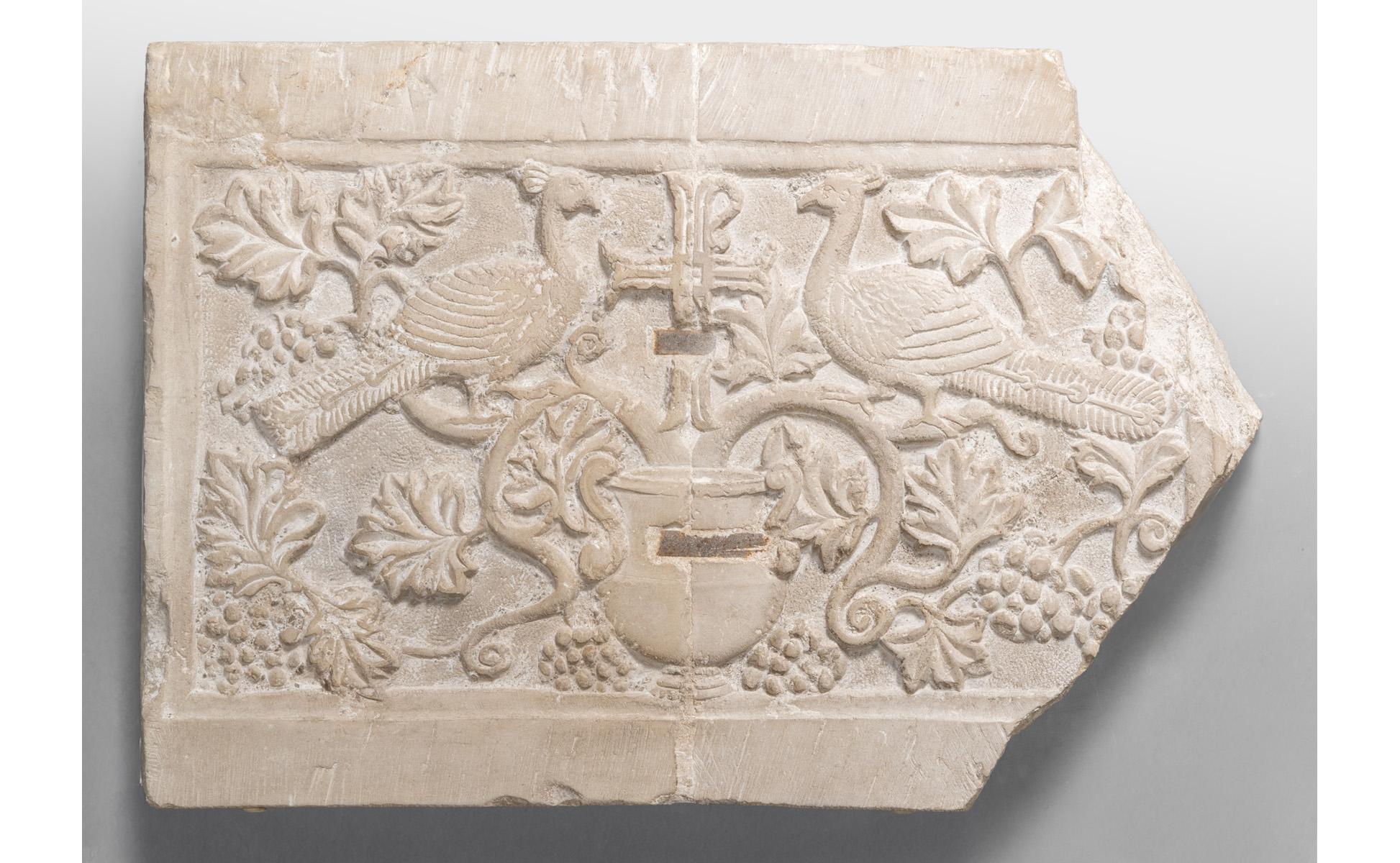 Frammento di bassorilievo in marmo scolpito con animali e fiori Arte Medioevale sec.XVI