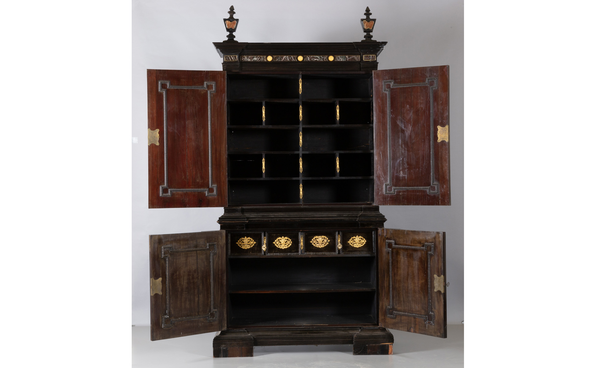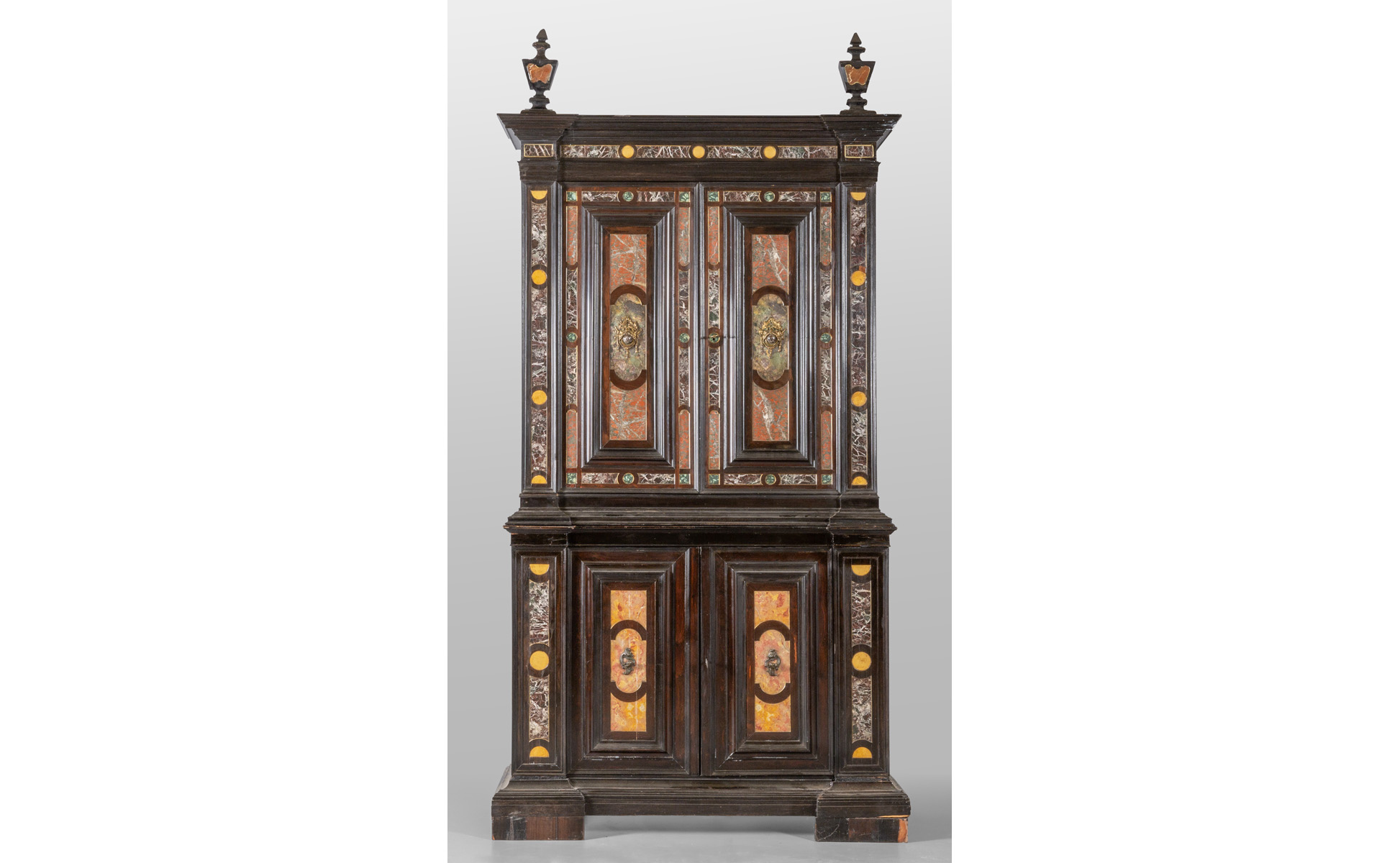 Armadio a quattro sportelli in ebano e palissandro ricca applicazione di marmi policromi sec.XVIII/XIX
