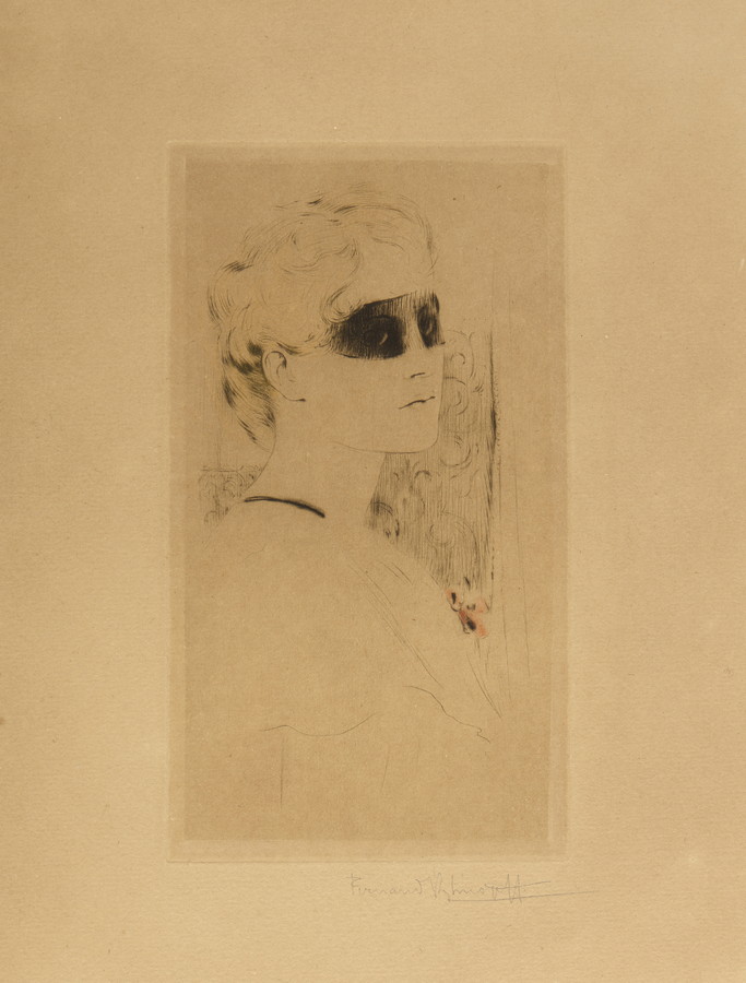 KHNOPFF FERNAND (1858 - 1921) UN MASQUE. Acquaforte ritoccata a mano. Cm 25,50 x 38,00. firma a matita