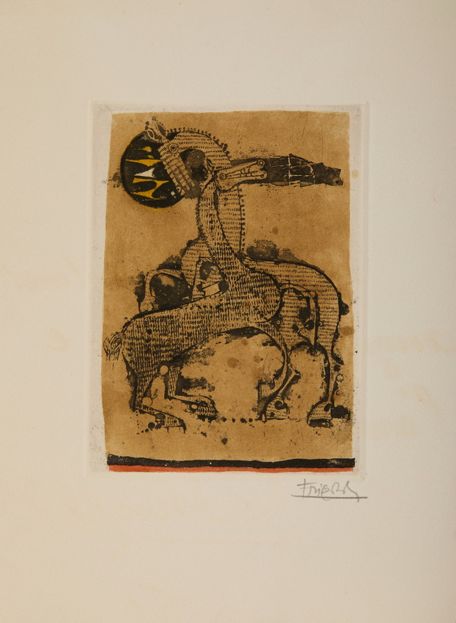FRIEDLANDER JOHNNY (1912 - 1992) DUE CAVALLI. 1957. Acquaforte e acquatinta. Cm 25,00 x 33,50. firma, data e dedica ad personam (1961)