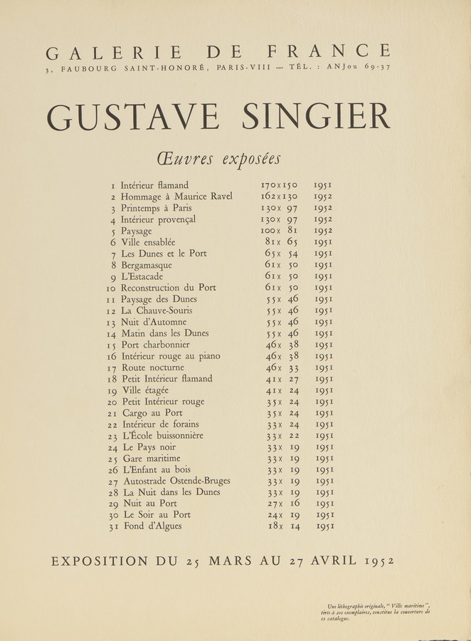 Grafica eseguita per la copertina del catalogo per la mostra Singier alla Galerie de France a Parigi, marzo-aprile 1952.