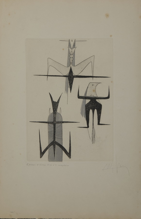 LAM WILFREDO (1902 - 1982) LOUP . 1959. acquaforte. Cm 33,00 x 50,00. firma e tiratura a matita, es. Pda