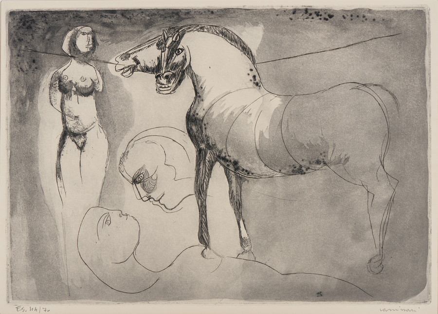 CASSINARI BRUNO (1912 - 1992) L'AMORE . Acquaforte e acquatinta. Cm 54,00 x 40,00. firma e tiratura a matita, es. 44/70