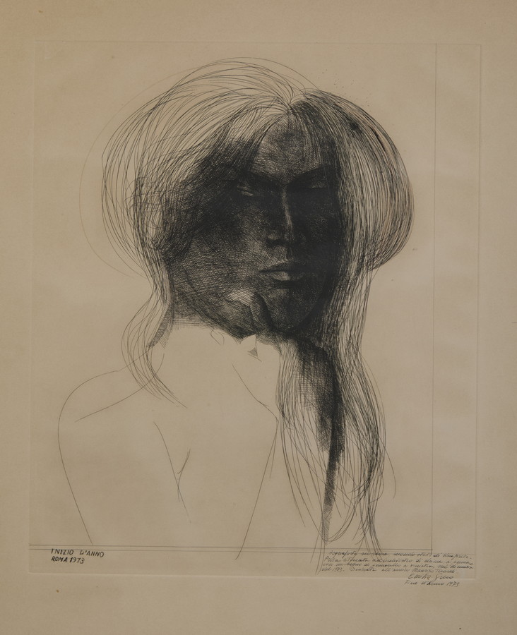 GRECO EMILIO (1913 - 1995) INIZIO D'ANNO. 1973. Acquaforte ritoccata a mano. Cm 68,00 x 80,00. firma