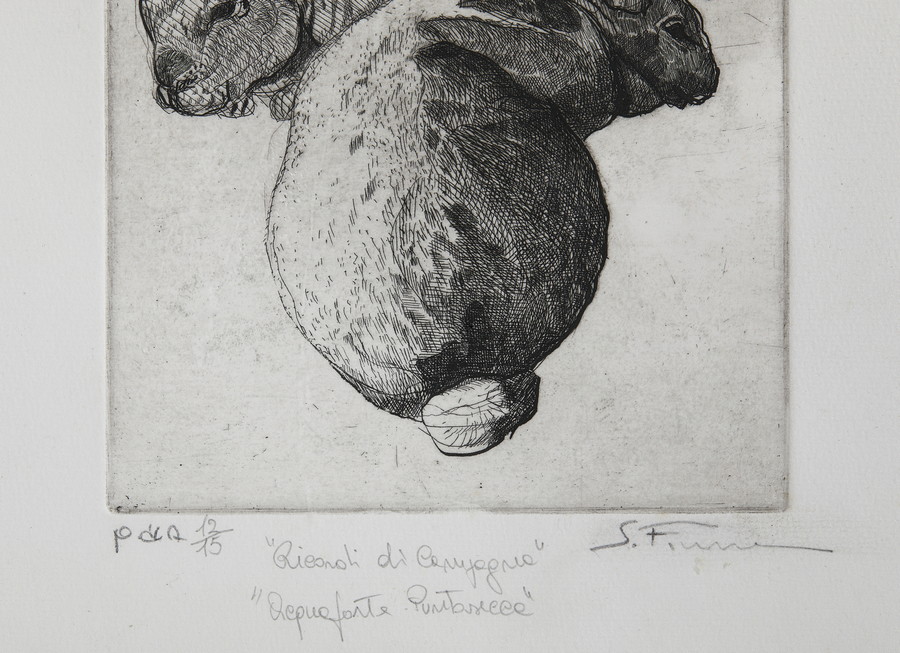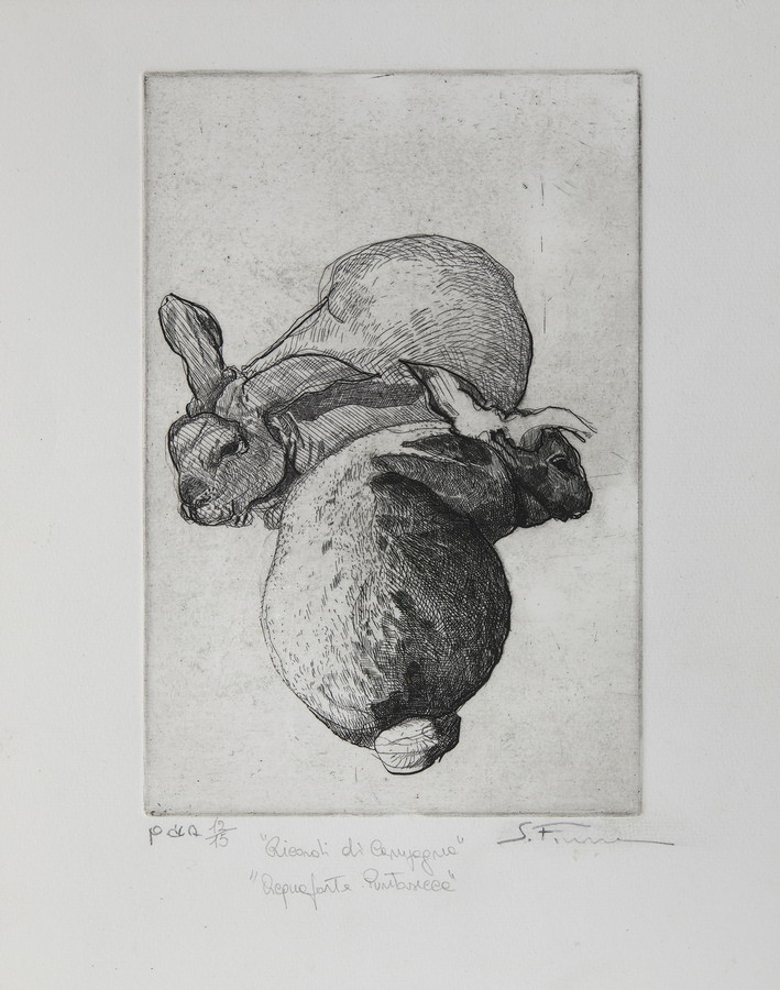 FIUME SALVATORE (1915 - 1997) RICORDI DI CAMPAGNA . Acquaforte, puntasecca. Cm 29,00 x 37,50. firma, titolo e tiratura a matita, es. Pda 12/15
