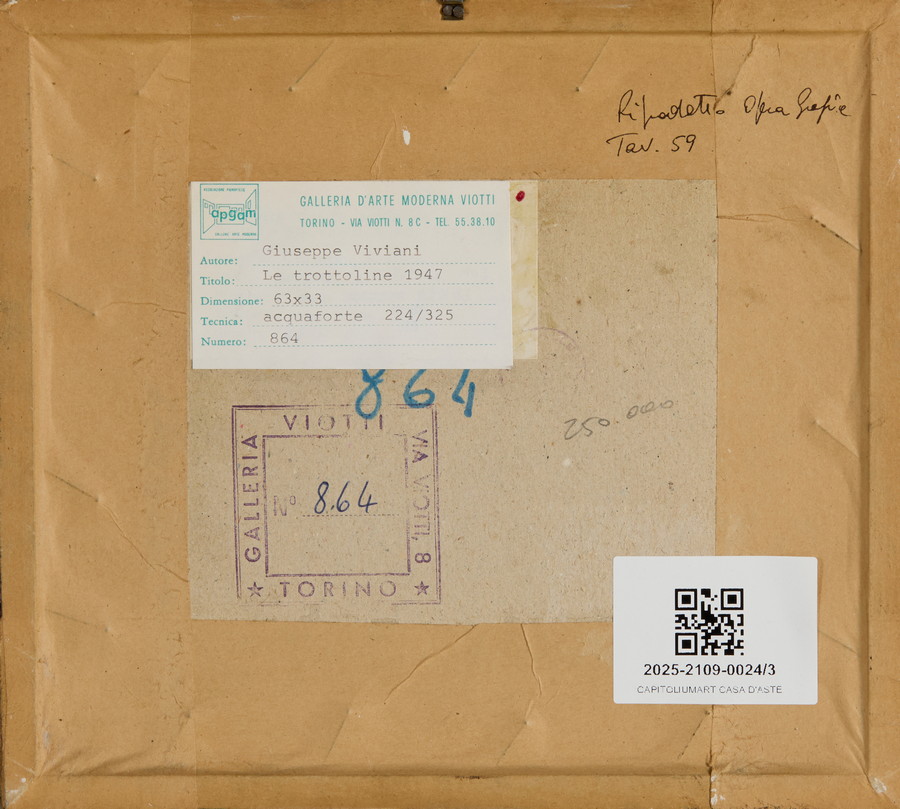 VIVIANI GIUSEPPE (1898 - 1965) LOTTO COMPOSTO DA N.3 FOGLI. acquaforte. . LE TROTTOLINE, 1947