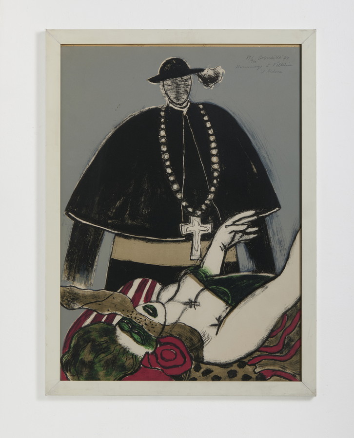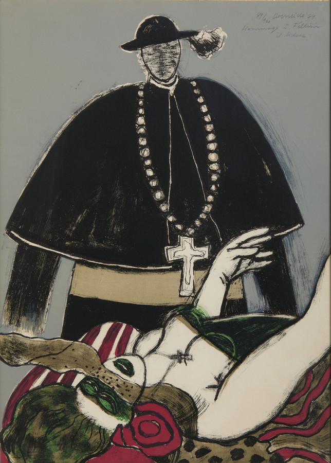 Il foglio fa parte della cartella Hommage de 9 peintres de Paris a Federico Fellini (Corneille, Kijno, Labisse, Lindstrom, Messagier, Pignon, Prassinos, Singier e Zao Wou Ki).