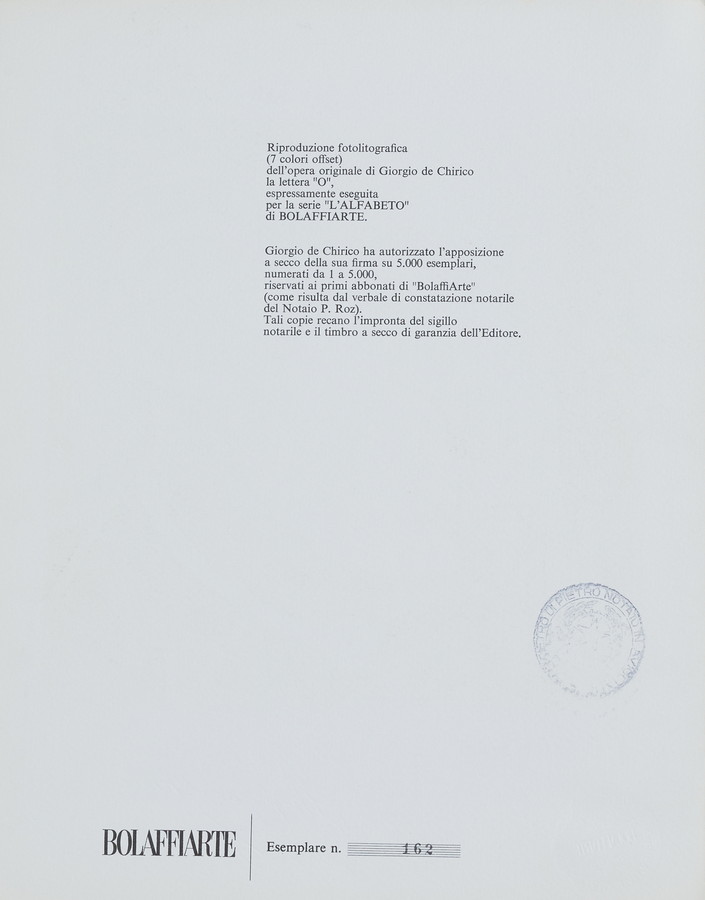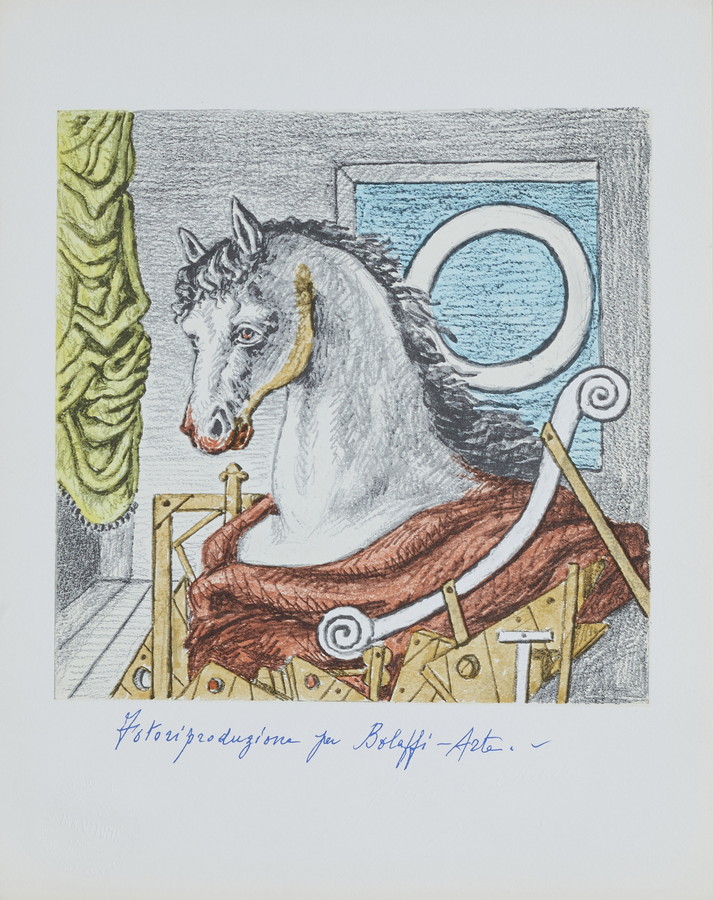 Giorgio De Chirico. O. 162, Timbro a secco con firma in basso a destra; Corrado Cagli. P. 3236. Firma in basso a destra a matita;