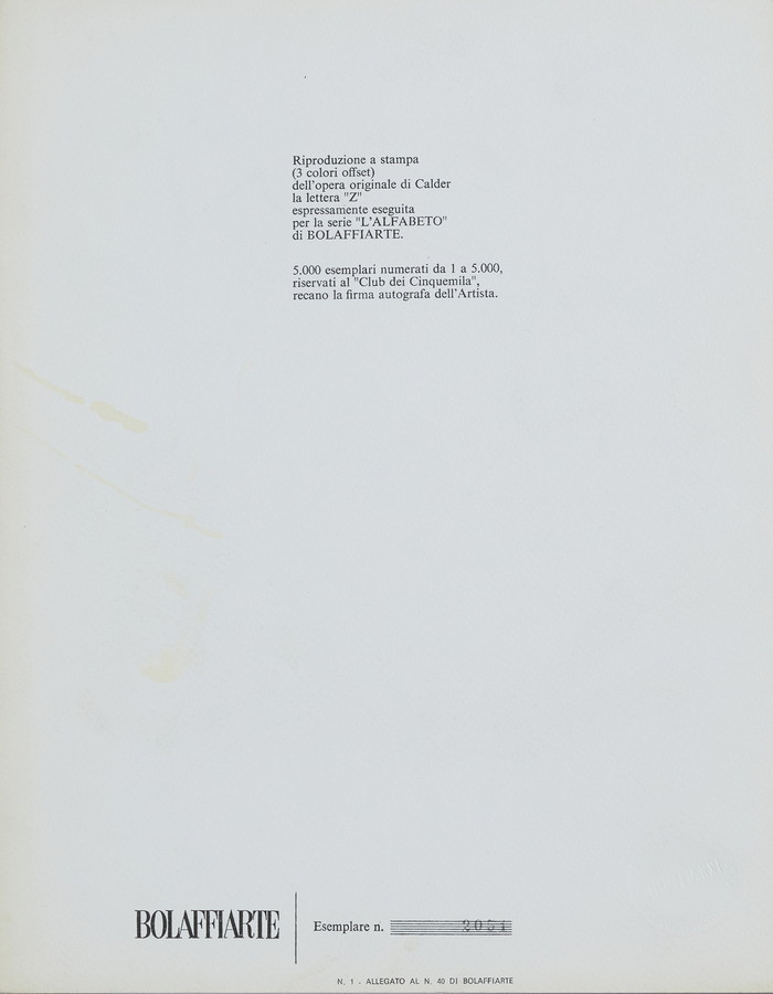 Calder. Z. 2051. Firma in basso a destra a matita.