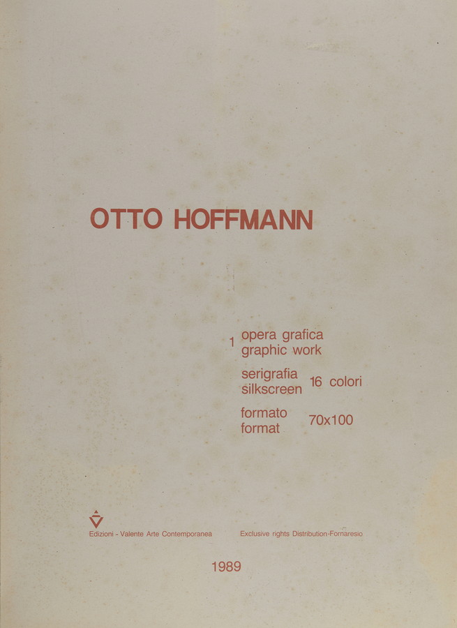 HOFFMANN OTTO (1907 - 1996) CARTELLA COMPOSTA DA N.1 FOGLIO. 1989. Serigrafia. Cm 100,00 x 70,00. firma, data e tiratura, es. XX/XXX