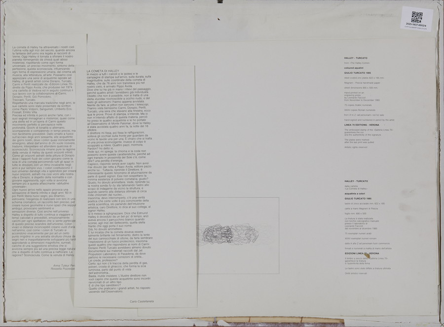 75 esemplari in numeri arabi e XXXV esemplari in numeri romani firmati e numerati a matita dall'artista.