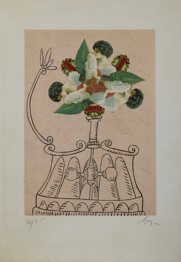 BAJ ENRICO (1924 - 2003) SENZA TITOLO. serigrafia e collage su carta. Cm 50,00 x 70,00. firma e tiratura a matita, es. 70/85, timbro a secco e filigrana