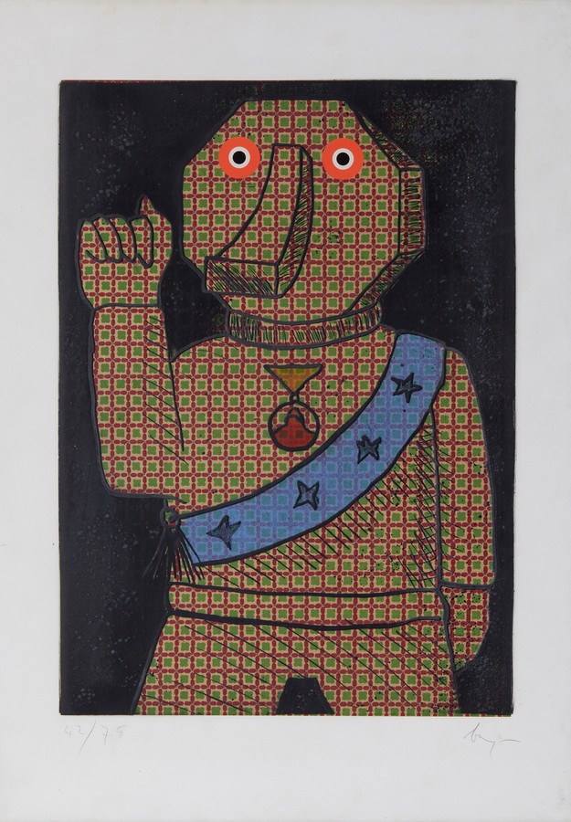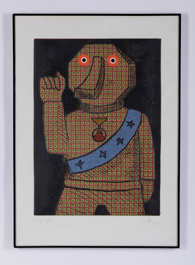 BAJ ENRICO (1924 - 2003) PICCOLO BLU. 1972. Acquaforte e Collage. Cm 50,00 x 70,00. firma e tiratura a matita, es. 42/75