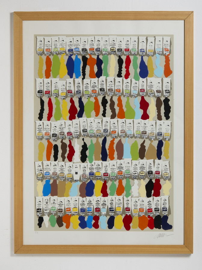 ARMAN FERNANDEZ (1928 - 2005) TUBETTI DI COLORE. Litografia polimaterica. Cm 72,00 x 100,00. firma e tiratura a matita, es. p.a.
