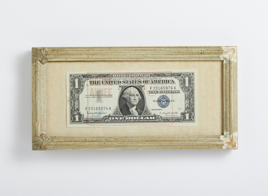 ARMAN FERNANDEZ (1928 - 2005) DOLLAR BILL . 1964. Serigrafia su valuta statunitense. Cm 15,40 x 6,50. firma e data a stampa. Cornice presente