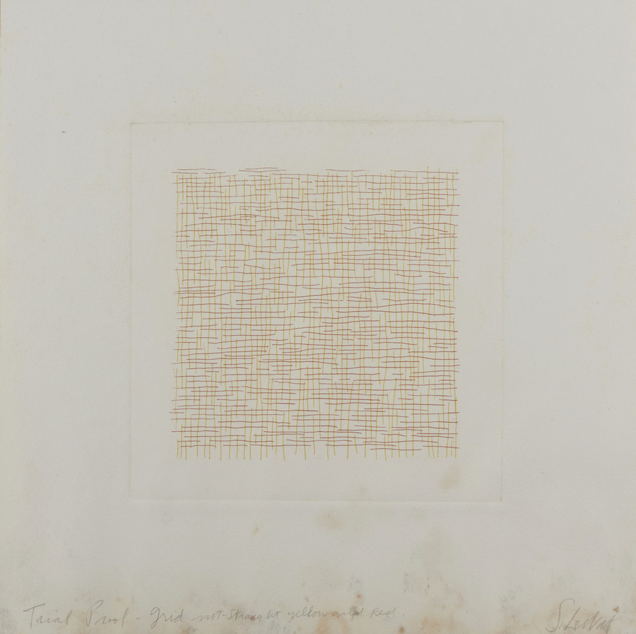 LEWITT SOL (1928 - 2007) GRID NOT-STRENGHT YELLOW AND RED. 1971. acquaforte. Cm 27,50 x 27,50. firma, titolo e tiratura a matita, es. a.p.