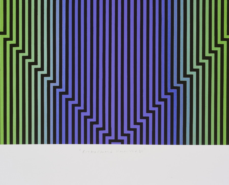 DELL'ACQUA GIOVANNI (n. 1952) RITMOCROMIA VIOLA VERDE . 2025. Serigrafia. Cm 110,00 x 110,00. firma, data, titolo e tiratura a matita, es 1/5