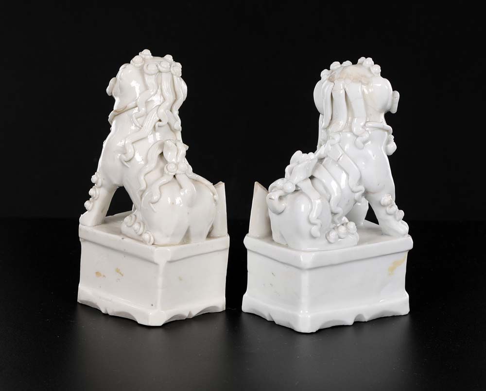 Coppia di cani di Pho in porcellana bianca, Cina, dinastia Qing, XIX secolo...