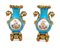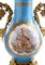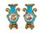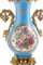 Questa coppia di vasi si colloca nella produzione francese ottocentesca di gusto neorococò, ispirata ai modelli della Manifattura di Sèvres del XVIII secolo, in particolare per l’uso del fondo turchese “bleu céleste”, le riserve figurate con amorini e la ricca doratura. Rispetto agli esemplari settecenteschi, le montature in bronzo dorato risultano più sviluppate e scenografiche, secondo un gusto tipico ottocentesco e della produzione parigina destinata all’arredo di rappresentanza. altezza cm 53