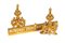 Finitura da camino in bronzo dorato, XIX secolo composta da una coppia di alari e da una balaustra ferma brace; quest'ultima è trattenuta dagli alari mediante un gancio a "L" capovolta posto lateralmente al verso di ognuno per consentire non solo il blocco ma anche lo scorrimento dell'elemento al raggiungimento della misura desiderata cm 34x22x15 (ogni alare - cm 74