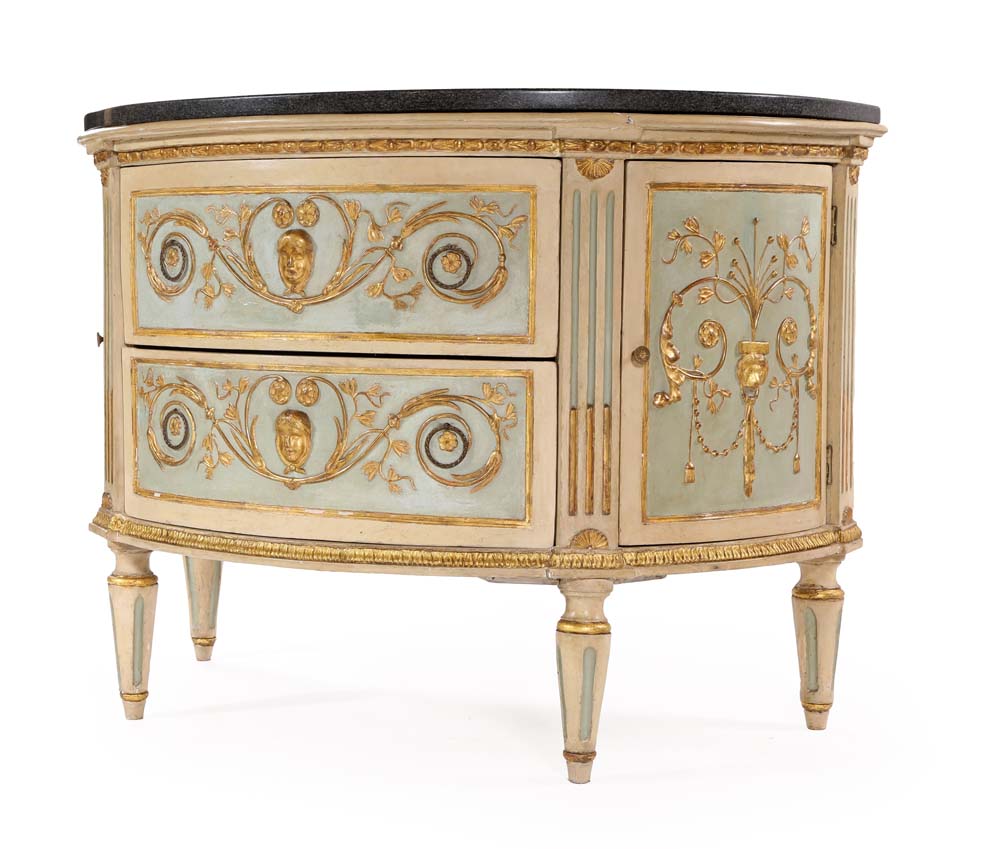 Cassettone a demi-lune in legno laccato, Piemonte, fine del XVIII secolo...