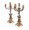 Coppia di candelabri in argento 800/000 dorato, a cinque luci con bracci...