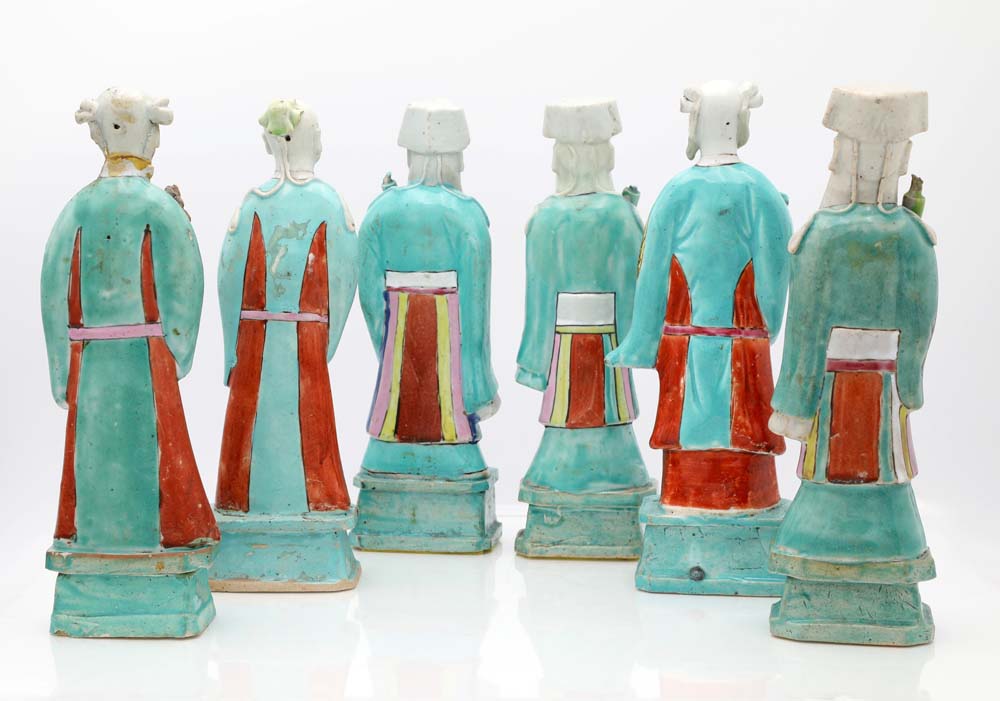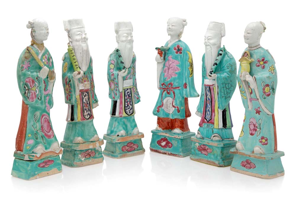Sei figure di Immortali in porcellana policroma, Cina, dinastia Qing, epoca...