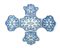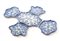Centrotavola in maiolica composto da cinque elementi sagomati, Lodi o Torino, manifattura Rossetti, prima metà del XVIII secolo formato da un elemento centrale di maggiori dimensioni e da quattro elementi satelliti sagomati, concepiti per essere disposti simmetricamente sulla tavola. La forma mossa e lobata di ciascun pezzo, con profili ondulati e contorni spezzati, è decorato da composizioni vegetali dipinte in monocromia blu con con piccoli fiori sparsi rossi, racemi e intrecci vegetali che si organizzano in composizioni simmetriche ma leggere, di ispirazione orientaleggiante. Lievi difetti cm 5x86x74