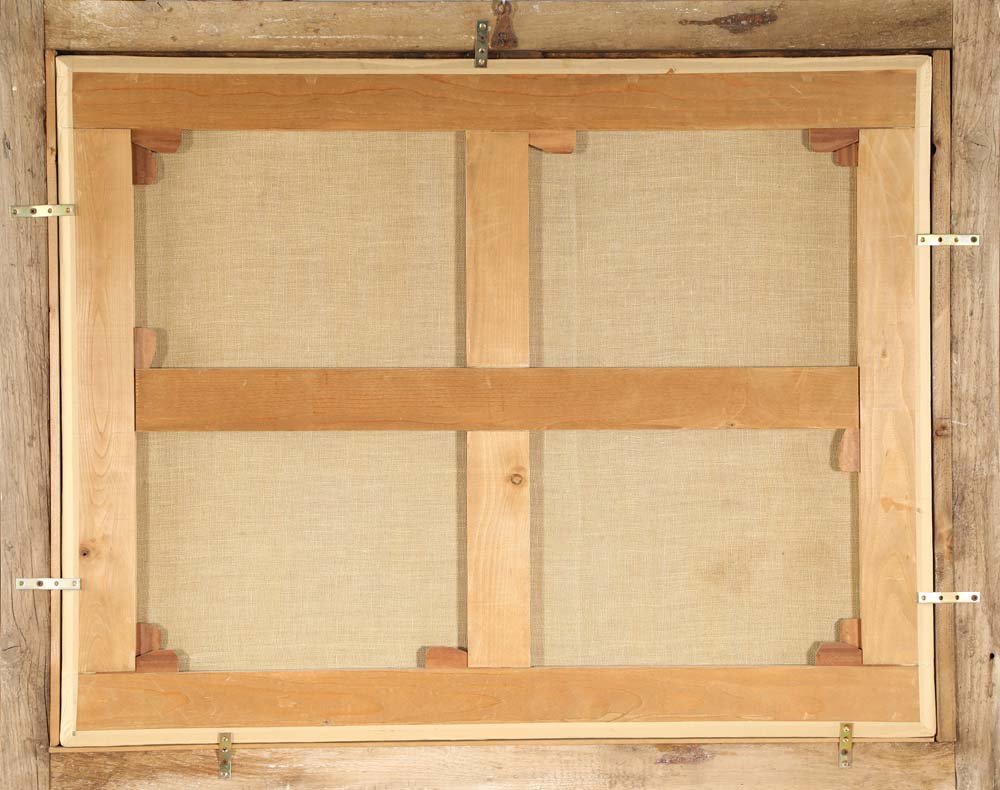 Marchisio coniuga la precisione neoclassica della scultura centrale con il movimento e la delicatezza delle figure femminili, ottenendo un equilibrio armonico tra solenni riferimenti religiosi e la gioia vitale della festa. L’opera colpisce per la raffinatezza compositiva, la finezza dei dettagli e la luminosità cromatica, immergendo lo spettatore in un mondo mitologico e sacro al tempo stesso. olio su tela cm 84x107,5 - con cornice cm 98x123,5