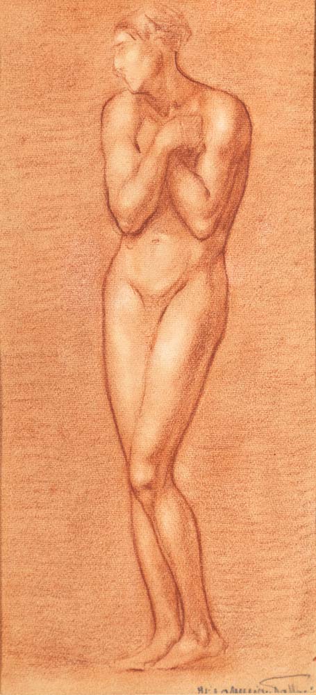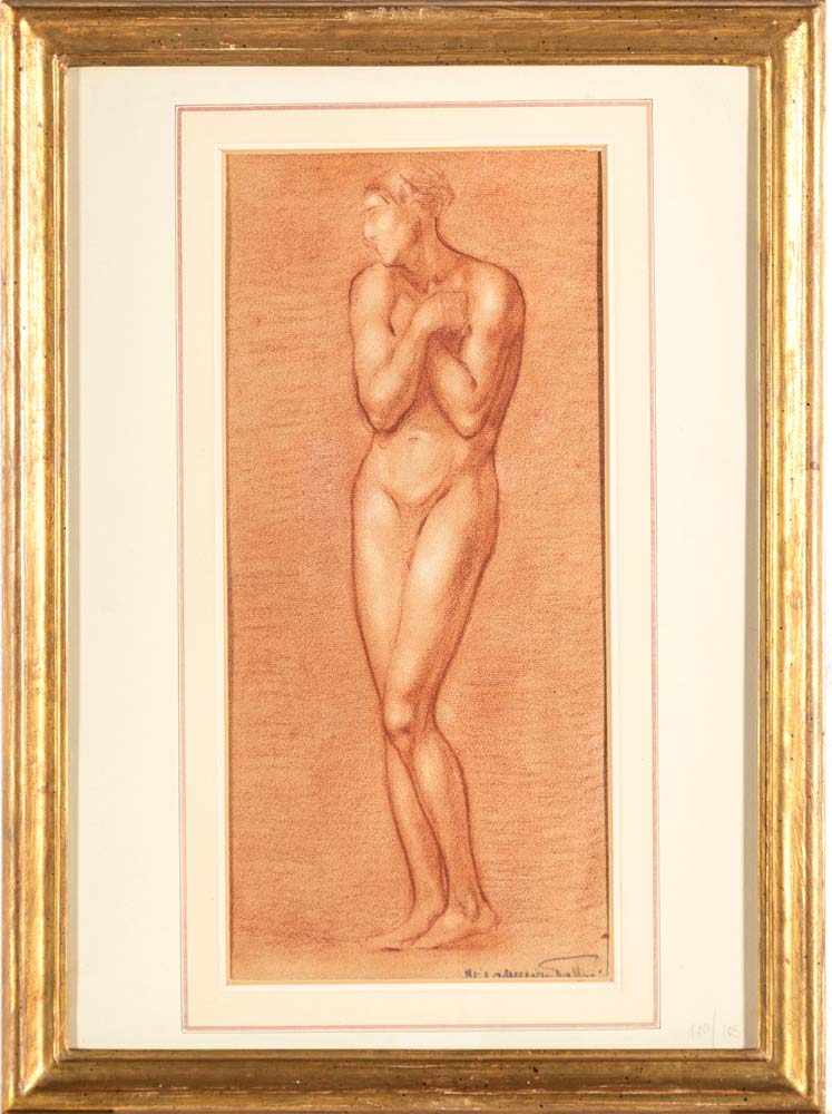 Italo Amerigo Passani (Carrara 1882 - ? 1963) Studio di nudo femminile Firmato in basso a destra Sanguigna su carta mm 390x180 - con cornice cm 55x40