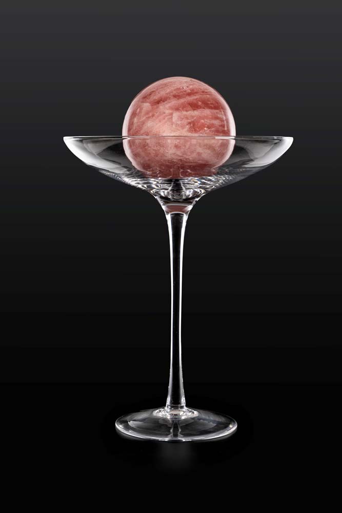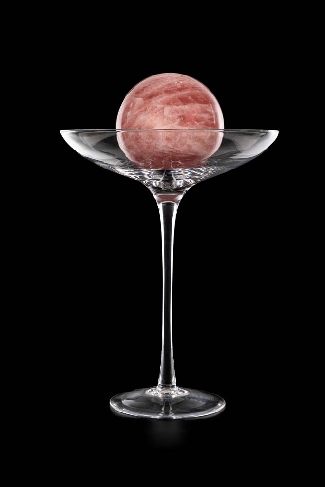 Alzata in vetro incolore con sfera in marmo rosa coppa circolare su alto ed...