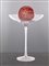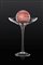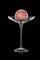 Alzata in vetro incolore con sfera in marmo rosa coppa circolare su alto ed esile stelo liscio; piede a disco cm 40x31,5