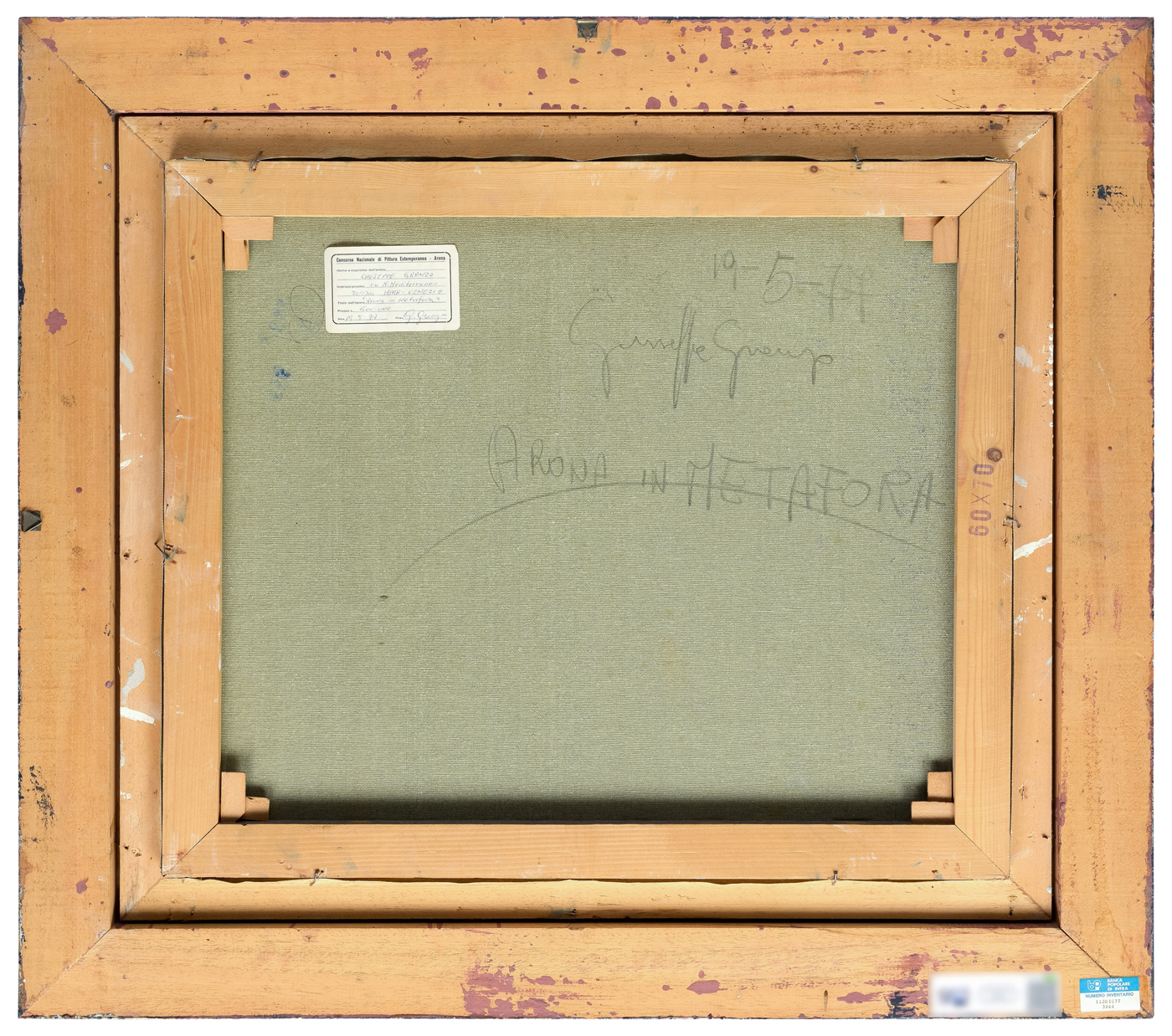 Elementi distintivi: sul verso, etichetta della Banca Popolare di Intra con riferimenti di inventario; etichetta del “Corso nazionale di pittura estemporanea”, Arona, 1977, con dati relativi all’opera