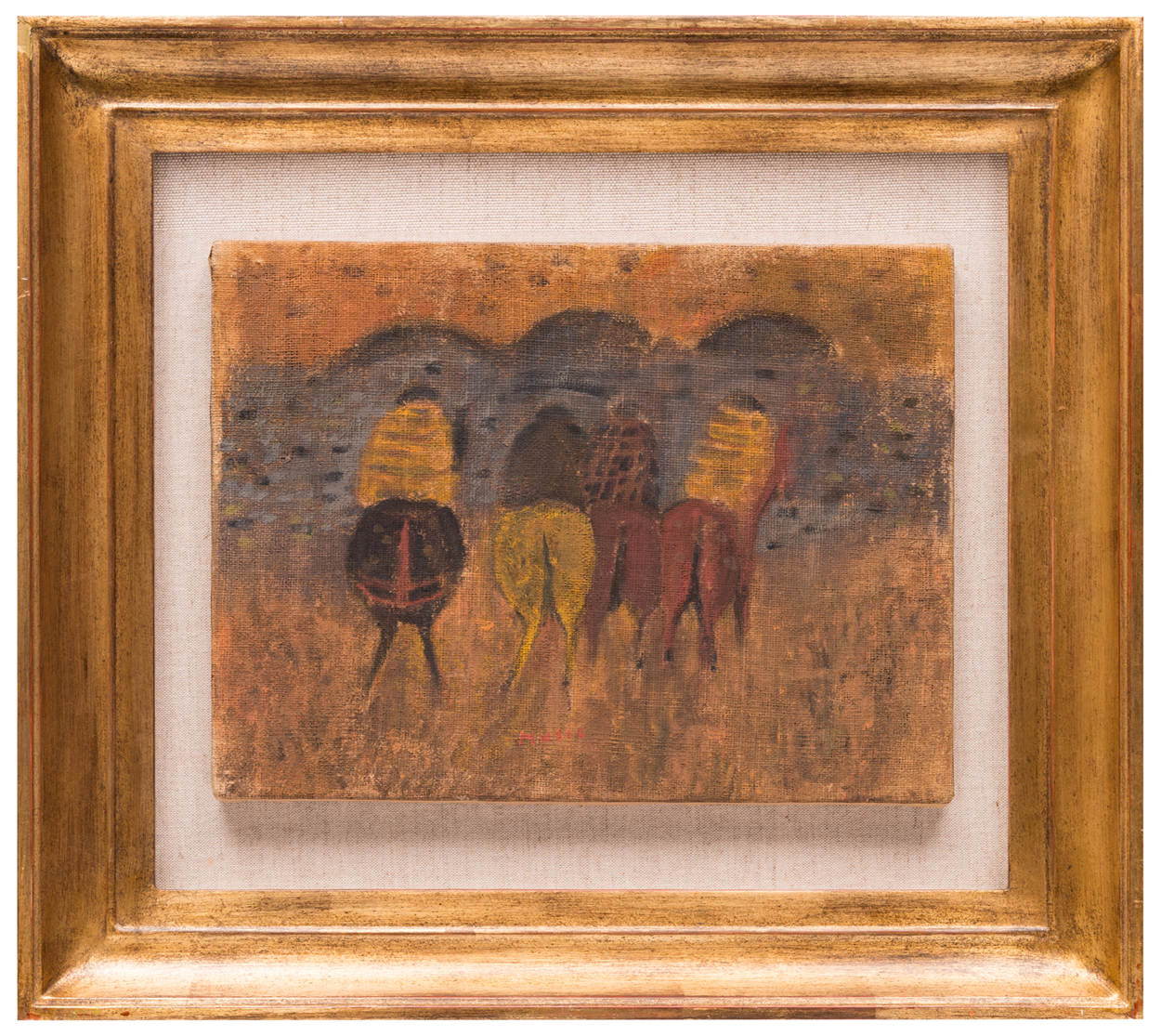 Proprio l’equilibrio tra figurazione e astrazione è la qualità focale di questa piccoal tela. La disposizione dei cavalli in sequenza, l’uso calibrato delle tonalità calde e la vibrazione decorativa delle superfici testimoniano una fase matura e consapevole della ricerca di Mušič, in cui il tema dalmata viene distillato fino a diventare un’immagine-simbolo. L’opera si distingue per la sua delicatezza lirica e per la capacità di unire semplicità narrativa e profondità emotiva — un tratto che rende questi Cavallini tra i soggetti più amati e riconoscibili dell’artista.