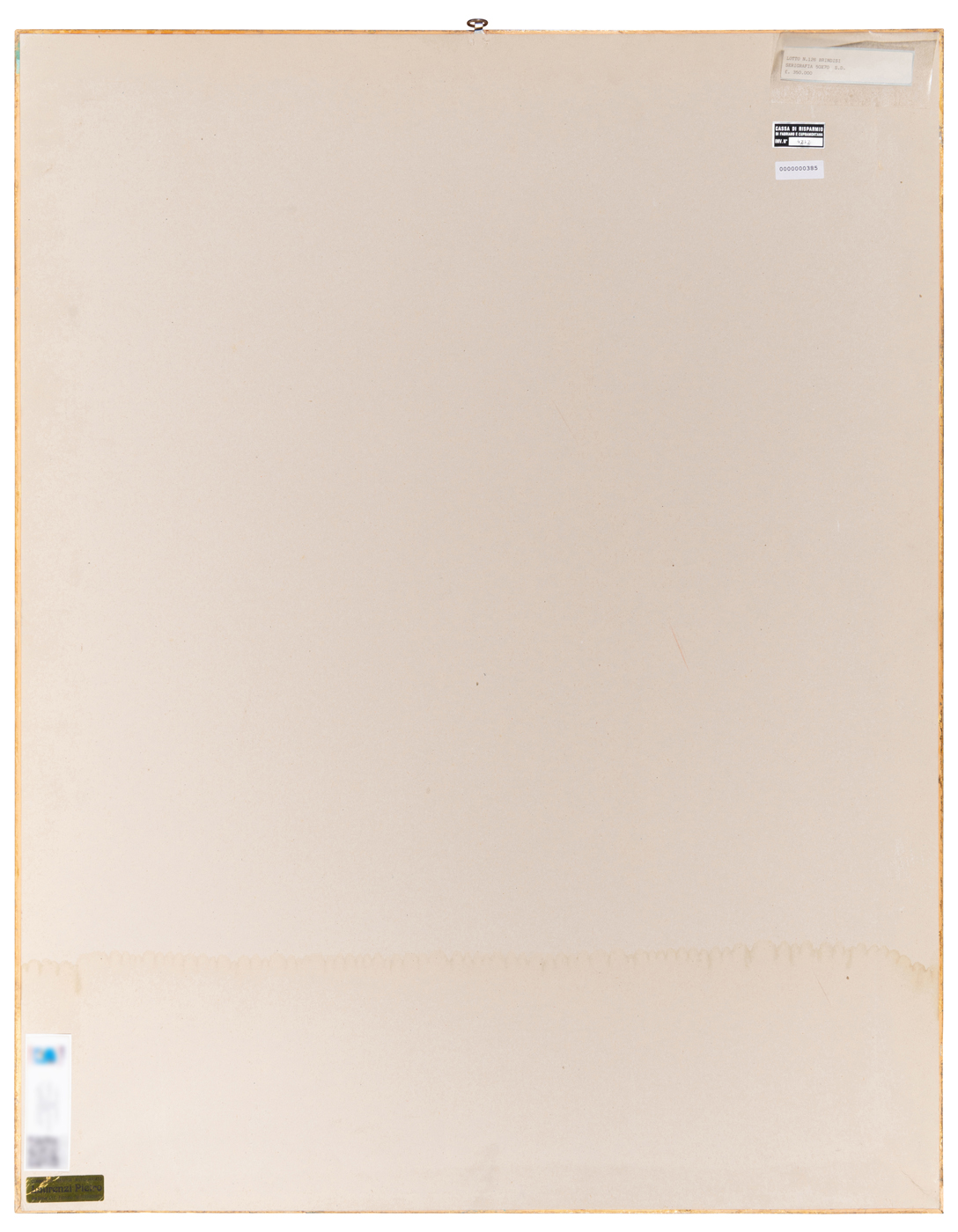 Elementi distintivi: sul verso, una etichetta anonima con dati dell’opera; etichetta della Cassa di Risparmio di Fabriano e Cupramontana con riferimenti di inventario