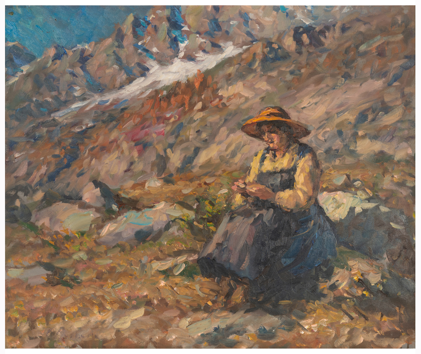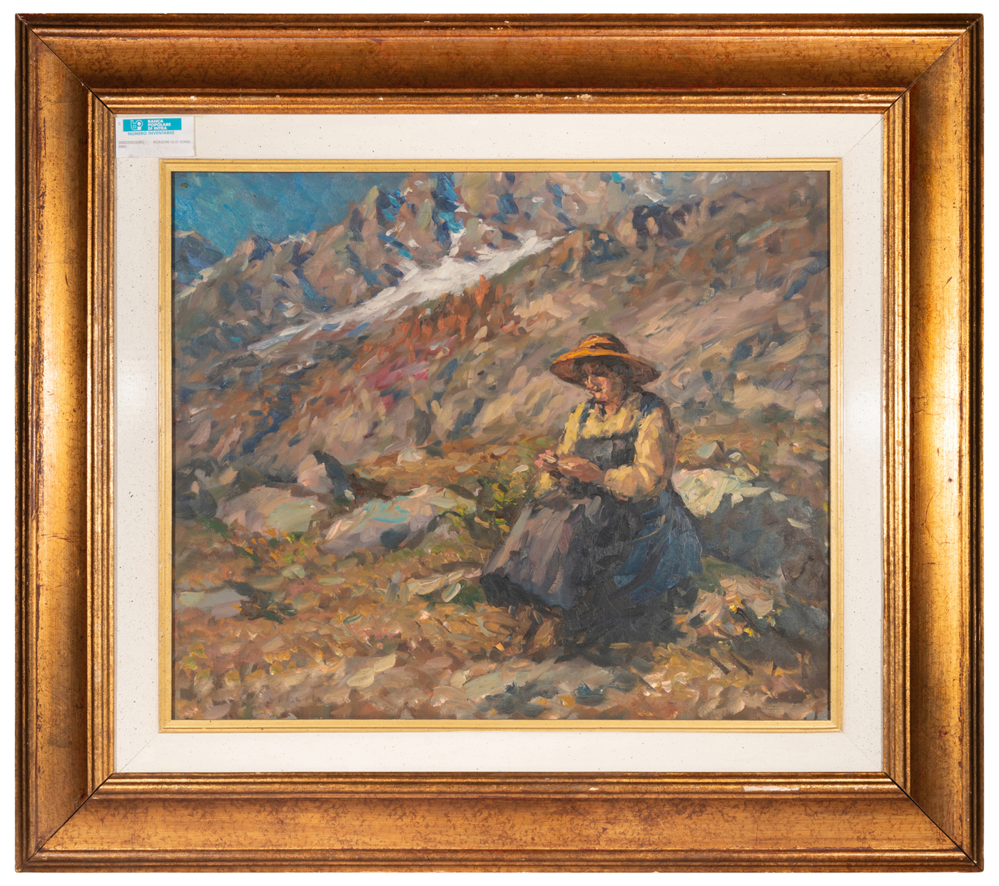 Carlo Bossone (1904 - 1991) Paesaggio alpino con contadina, 1942