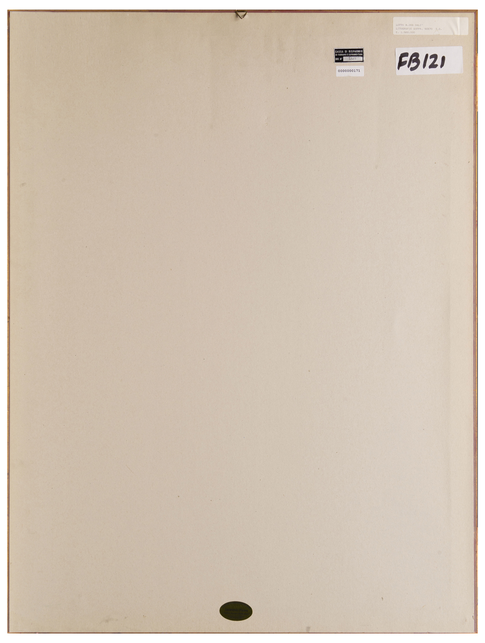 Elementi distintivi: al recto, timbro Edizioni Eldec Roma; sul verso, etichetta anonima con dati dell'opera; etichetta Cassa di Risparmio di Fabriano e Cupramontana con riferimenti di inventario