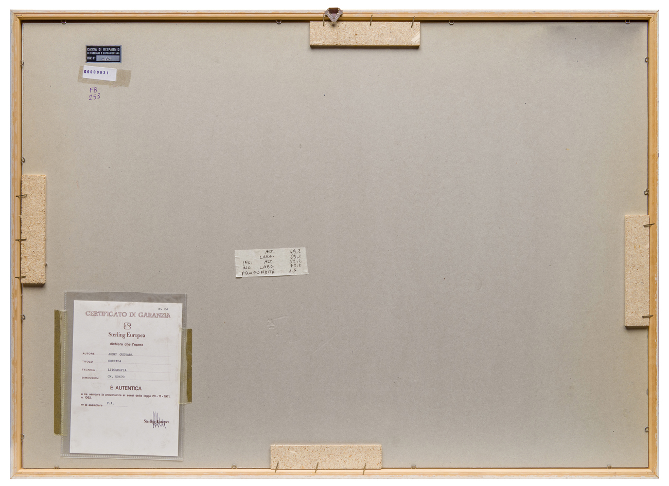 Elementi distintivi: sul verso, etichetta Cassa di Risparmio di Fabriano e Cupramontana con riferimenti di inventario