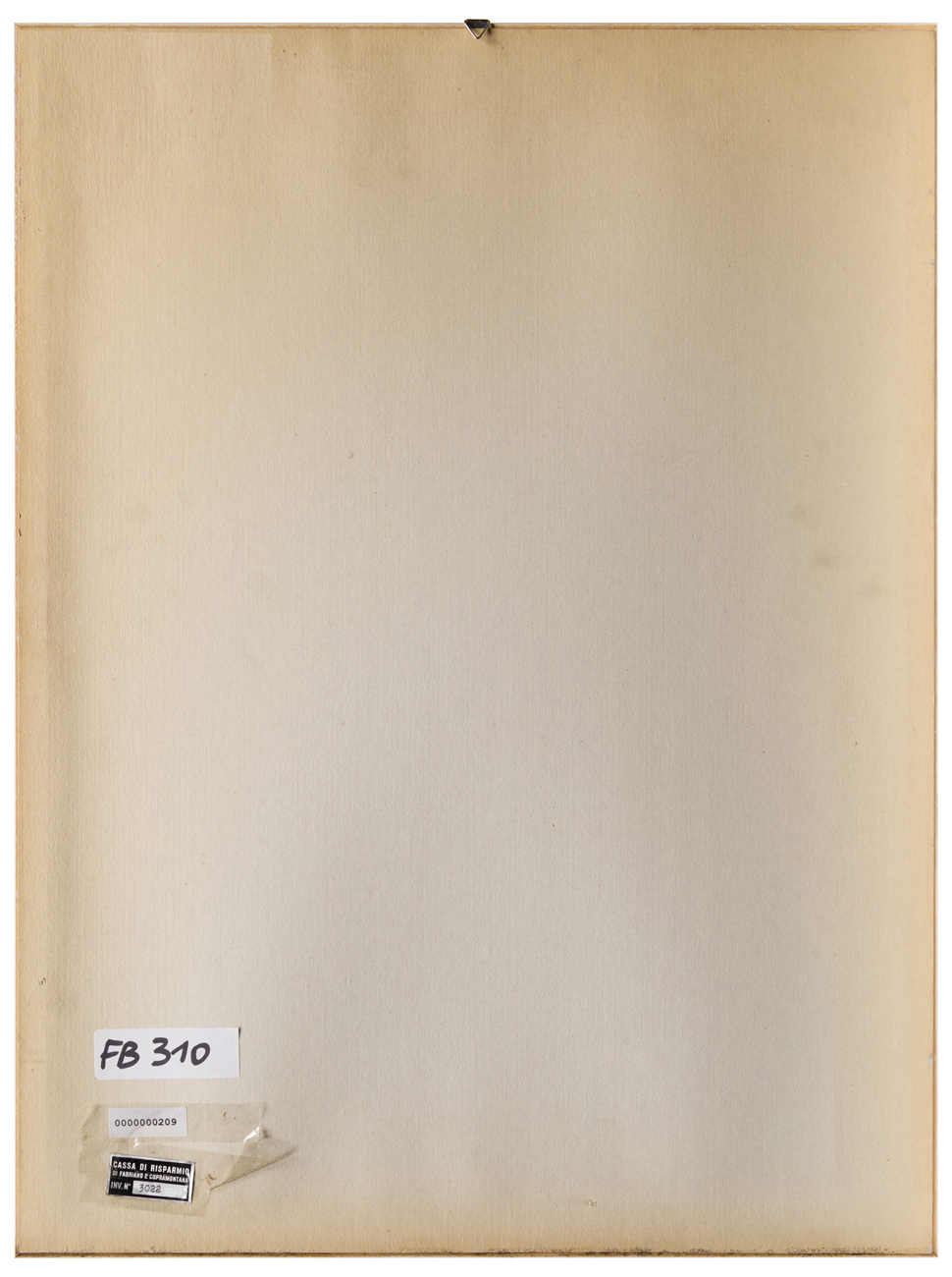 Elementi distintivi: sul verso, etichetta Cassa di Risparmio di Fabriano e Cupramontana con riferimenti di inventario