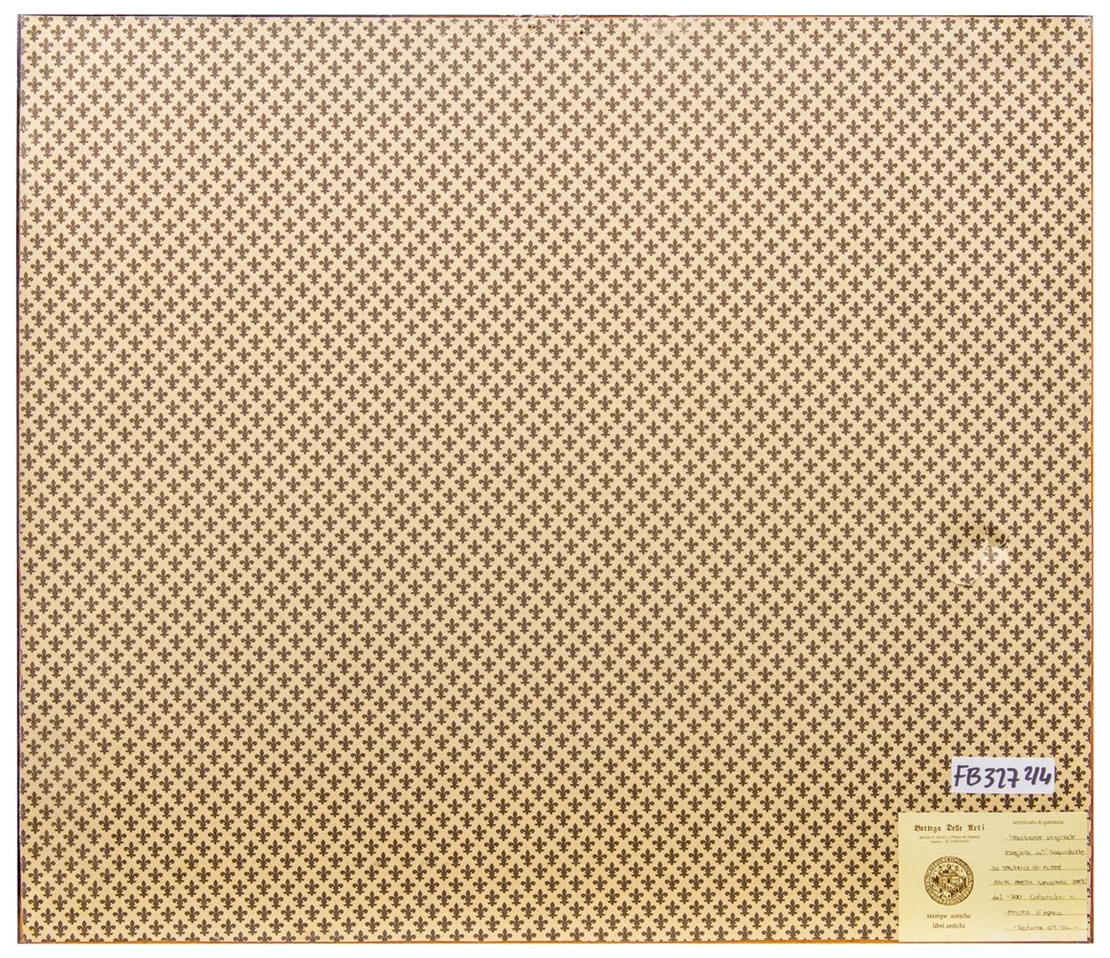 Certificati: certificato della Bottega Delle Arti, con dati sintetici dell'opera, al verso